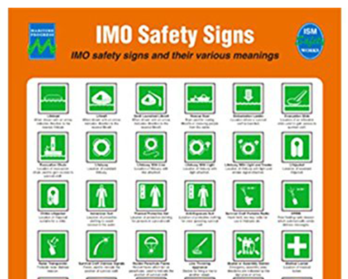 IMO signs are standardized symbols and signs used on marine vessels to indicate safety information, emergency procedures, and equipment locations. They are crucial for ensuring the safety of passengers and crew in case of emergencies.